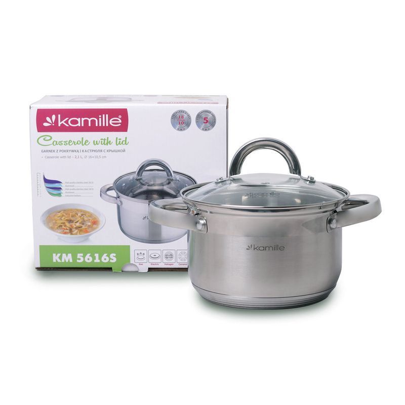 Кастрюля 2,1л нерж.сталь со стекл.крышкой 16см 5-ти сл.дно арт.5616S (8)