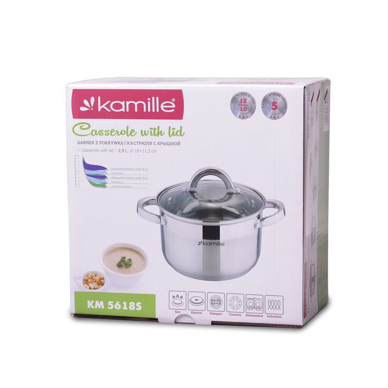 Кастрюля 2,9л нерж.сталь со стекл.крышкой 18см 5-ти сл.дно арт.5618S (8)