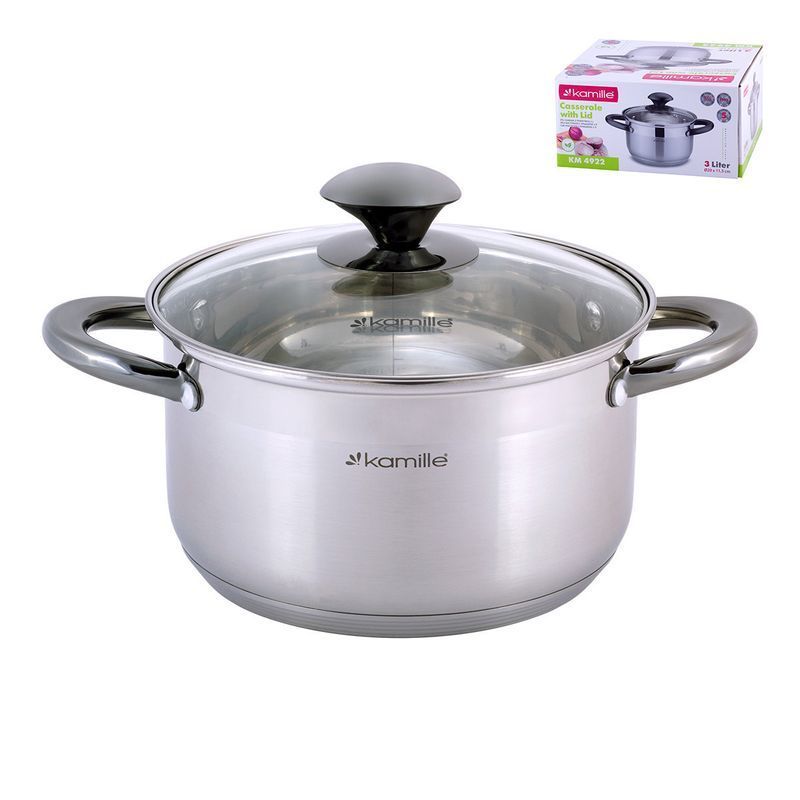 Кастрюля 3л нерж.сталь стекл.крышка 20см, индукция, арт. 4922 (4)