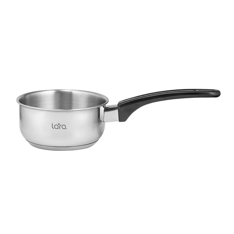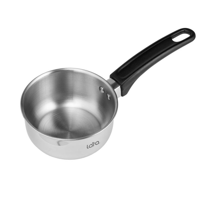 Ковш LARA – это универсальное изделие с широким функционалом, которое дополнит основной комплект кухонной посуды на вашей кухне. Вы сможете быстро отварить яйца или приготовить кашу на завтрак. Рабочего объема будет достаточно для приготовления разнообразных соусов, подлив или кремов.Ковш изготовлен из высококачественной нержавеющей стали марки AISI201 с комбинированной полировкой корпуса: снаружи матовая, внутри зеркальная. Край сотейника завернут для удобного перелива. Бакелитовая ненагревающаяся ручка черного цвета. Стальное капсулированное индукционное дно подходит для всех типов плит. Можно мыть в посудомоечной машине.