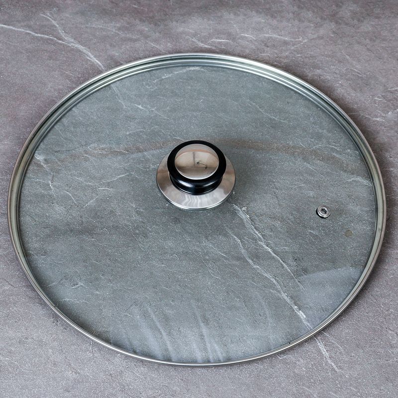 Крышка 28см стекло с нерж.сталь ручкой, метал.ободком YGT-28 (30)