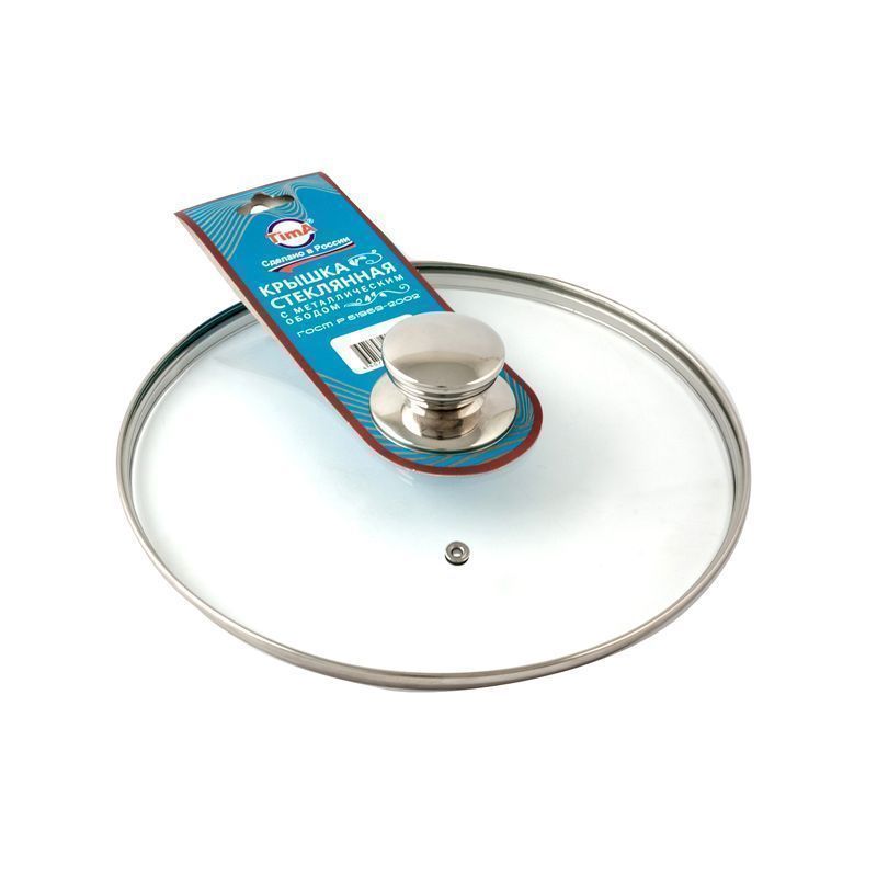 Крышка 20см стекло с нжс ручкой метал.ободком низкая арт.5720 (10)