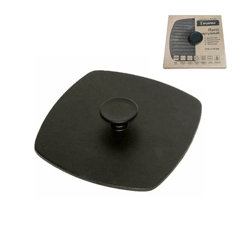 Чугунная тяжелая крышка-пресс незаменимая помощница сковороды-гриль. Используется для приготовления стейков из мяса или рыбы, овощей на гриле, цыпленка табака.