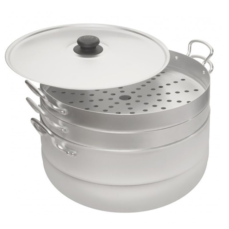 Алюминиевый манты-казан с сетками – удобная, практичная и долговечная посуда для приготовления блюд на пару. Конструкция мантоварки состоит из корпуса и комплекта сеток для размещения продуктов на разных уровнях. Отверстия в дне сеток позволяют распределить пар по всему объему мантоварки, что позволит приготовить еду равномерно и одновременно. Количество сеток можно регулировать, добавлять или уменьшать. Сетки можно приобрести дополнительно.