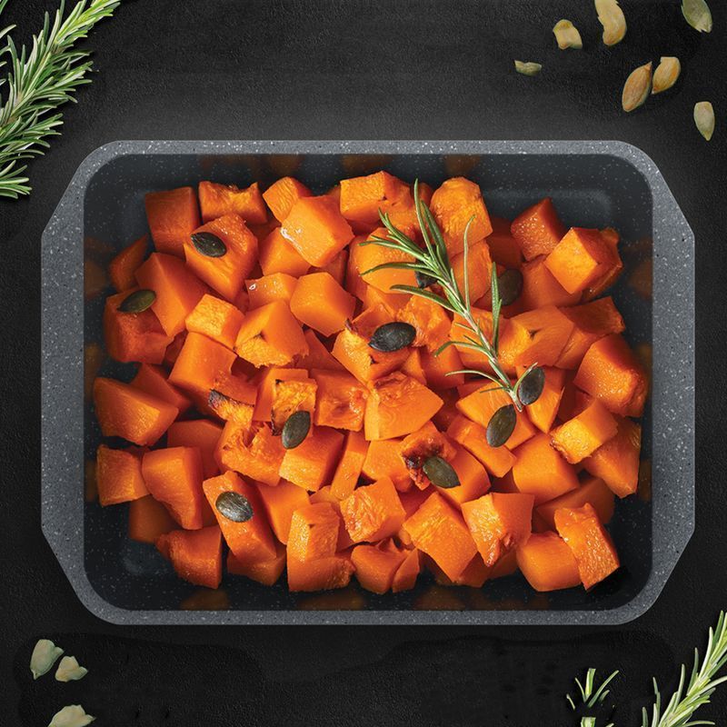 Противень изготовлен из высококачественного пищевого алюминия с антипригарным покрытием, что обеспечивает ему прочность и долговечность. Антипригарное покрытие не вступает в реакцию с продуктами питания. Противень быстро и равномерно нагревается, поэтому блюда в нем хорошо пропекаются. Такая посуда незаменима для приготовления запеканок и пирогов, а также блюд из мяса и овощей. Готовая выпечка без труда из него извлекается. Во избежание повреждений антипригарного покрытия, не используйте острые металлические предметы. После использования легко и быстро моется. Подходит для использования в духовках с максимальной температурой 260°С. Подходит для мытья в посудомоечной машине.
