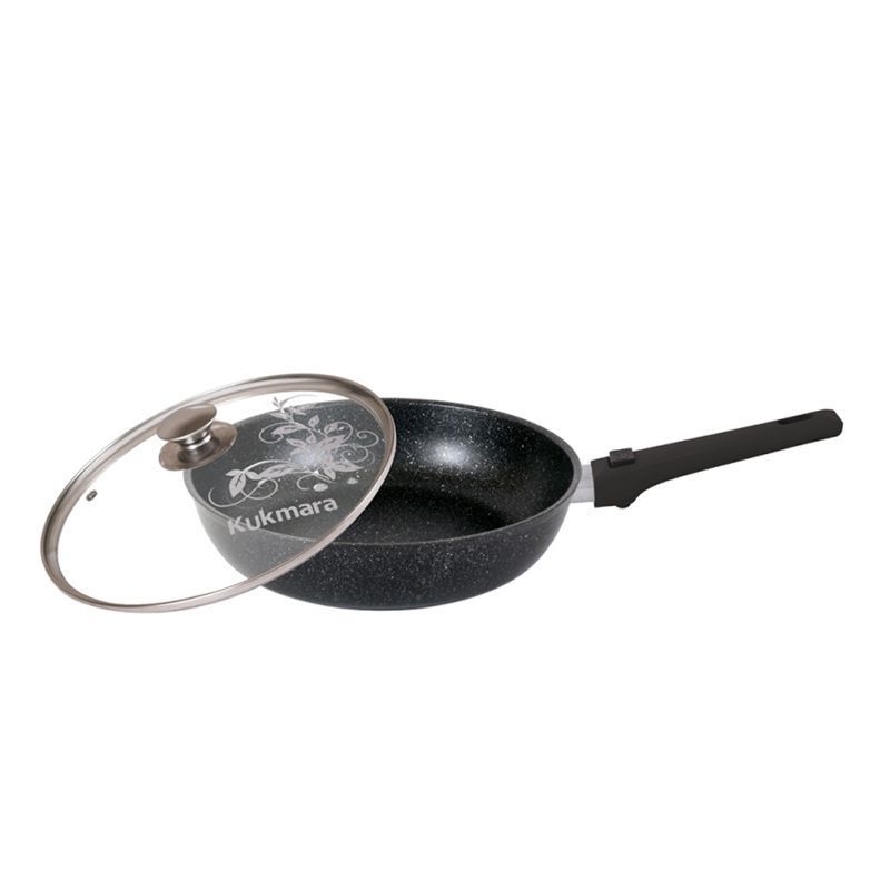 Сковорода 24см h6см алюминий АП со съемной ручкой стекл. крышкой темный мрамор (4)