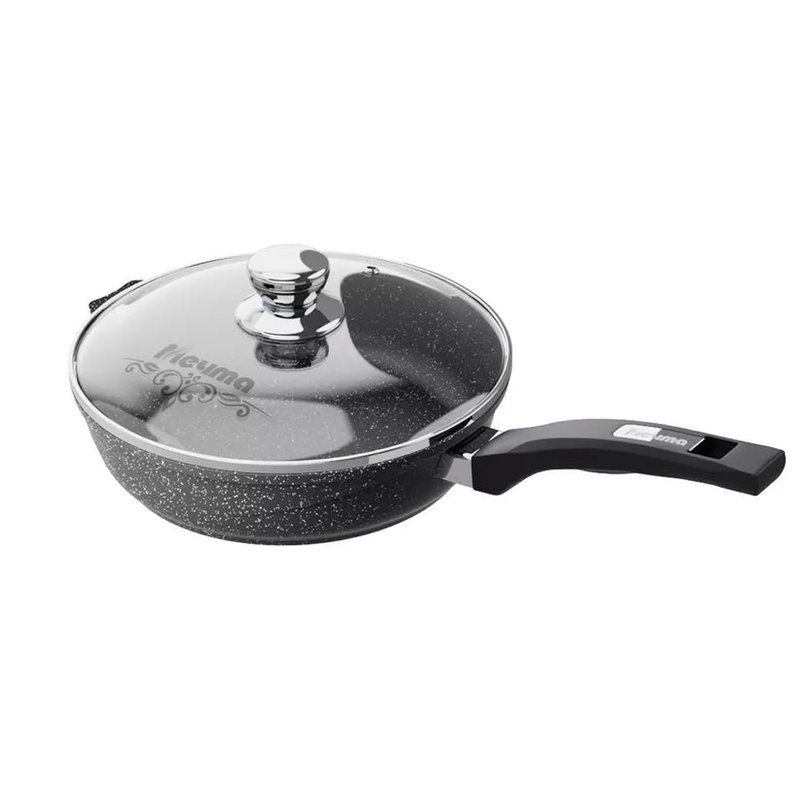 Сковорода 24см алюминий АП ГРАНИТ BLACK стекл.крышка подар.уп. (5)