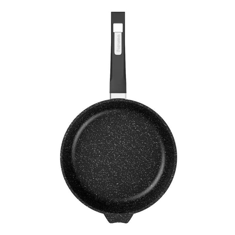 Сковорода — хороший инструмент, который подойдет для приготовления разнообразных блюд из овощей, рыбы или мяса. Утварь изготовлена из легкого и прочного пищевого алюминия, поэтому отличается долговечностью, нечувствительностью к коррозии и механическим воздействиям. Многослойное антипригарное покрытие обеспечивает равномерное распределение тепла по всей внутренней поверхности. Можно готовить с минимальным количеством масла. Сковорода подходит для электрических, газовых, стеклокерамических плит. Она оснащена ручкой эргономичной формы из бакелита, предохраняющей от ожога в процессе приготовления пищи. Чтобы не повредить антипригарное покрытие, при мытье следует использовать средства, не содержащие абразивов.