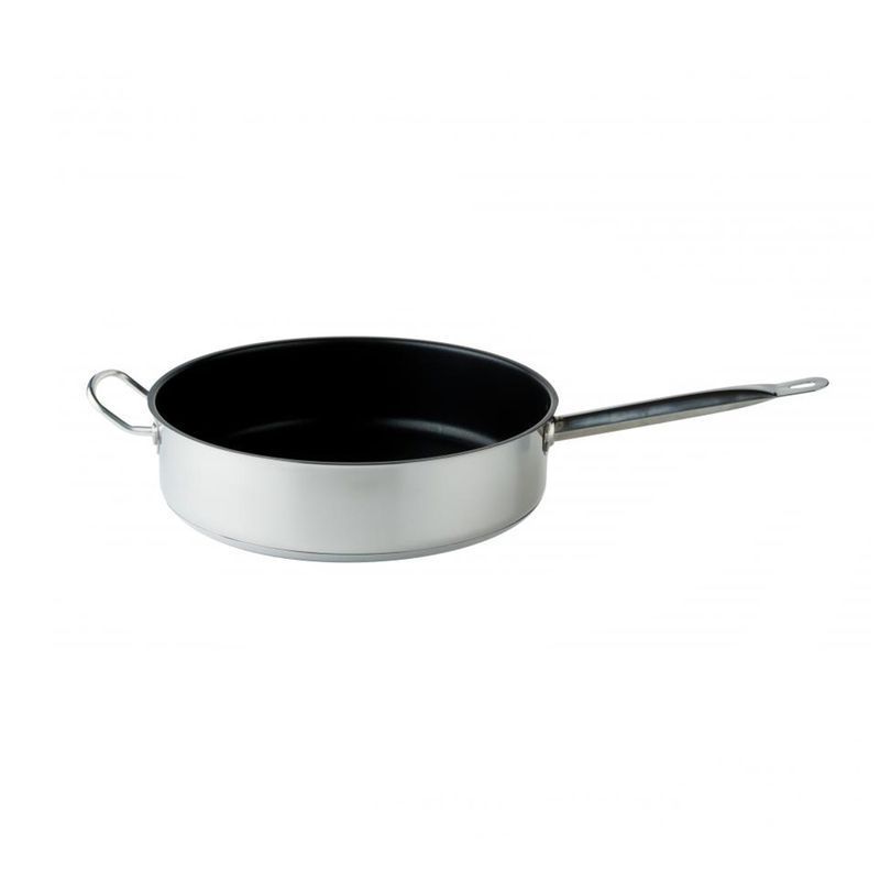Сковорода глубокая из нержавеющей стали с антипригарным покрытием - стильное решение для Вашей кухни. Сотейник антипригарный идеально подходит для индукции, нагревается быстрее алюминиевых аналогов, т.к. дно полностью выполнено из стали. Следовательно, меньше расходуется энергия. Утолщенное дно равномерно распределяет тепло и сохраняет его, так же способствую более быстрому приготовлению пищи. Благодаря антипргарному покрытию можно готовить практически без использования масла и сделать своё меню более диетическим и полезным. Сотейник отлично подходит как для жарки, так и для тушения. Диаметр сковороды 34 см, диаметр дна 32 см, высота борта 9 см. Подходит для всех типов плит, включая индукцию. Можно использовать в посудомоечной машине.