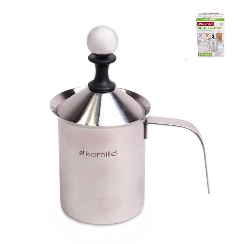 Ручной капучинатор выполнен из нержавеющей стали. Объем 400мл позволяет взбивать пену на 2-3 чашки капучино. С помощью этого капучинатора вы сможете приготовить холодную и горячую молочную пену или просто подогреть молоко.
