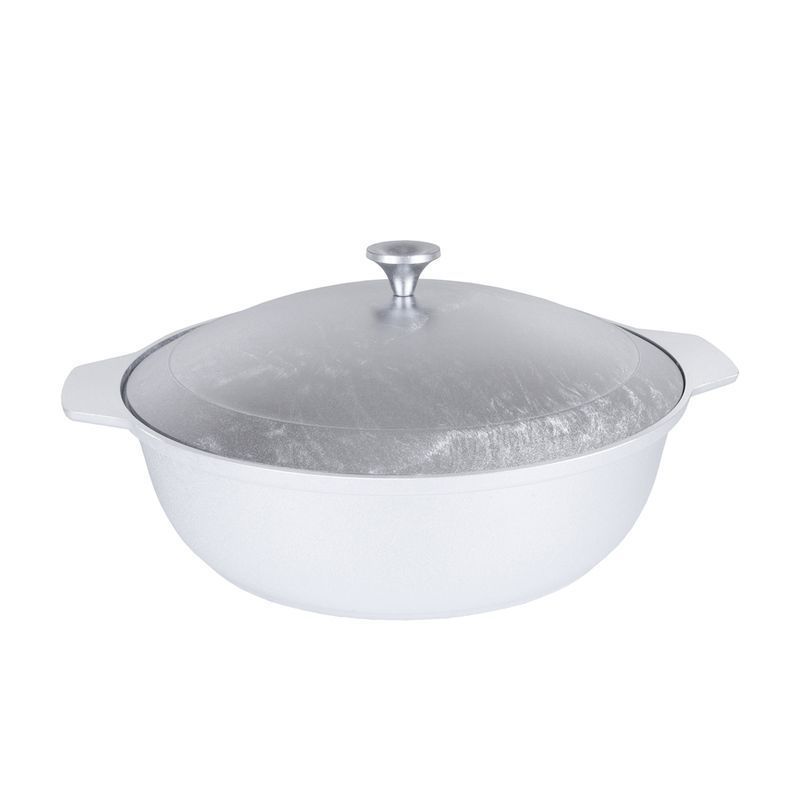 Кастрюля-жаровня изготавливается из пищевых алюминиевых сплавов методом кокильного литья. Это самый качественный и экологически чистый способ изготовления литой толстостенной посуды. При приготовлении пищи в литой посуде создается эффект "русской печи"; еда в ней "томится", а не жарится, придавая пище особый вкус. Такая посуда удобна для жарки мяса, запекания индейки или курицы, тушения овощей.