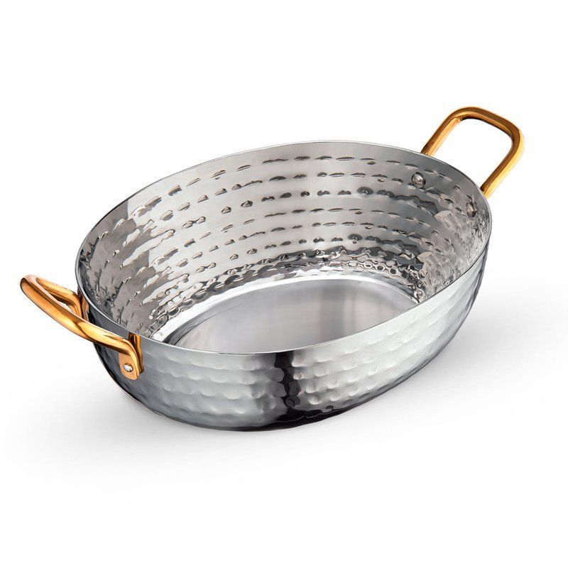 Сковорода сервировочная 16*13*5см нерж.сталь Silver глубокая с 2-мя зол.ручками WL-554134/S (6/36)