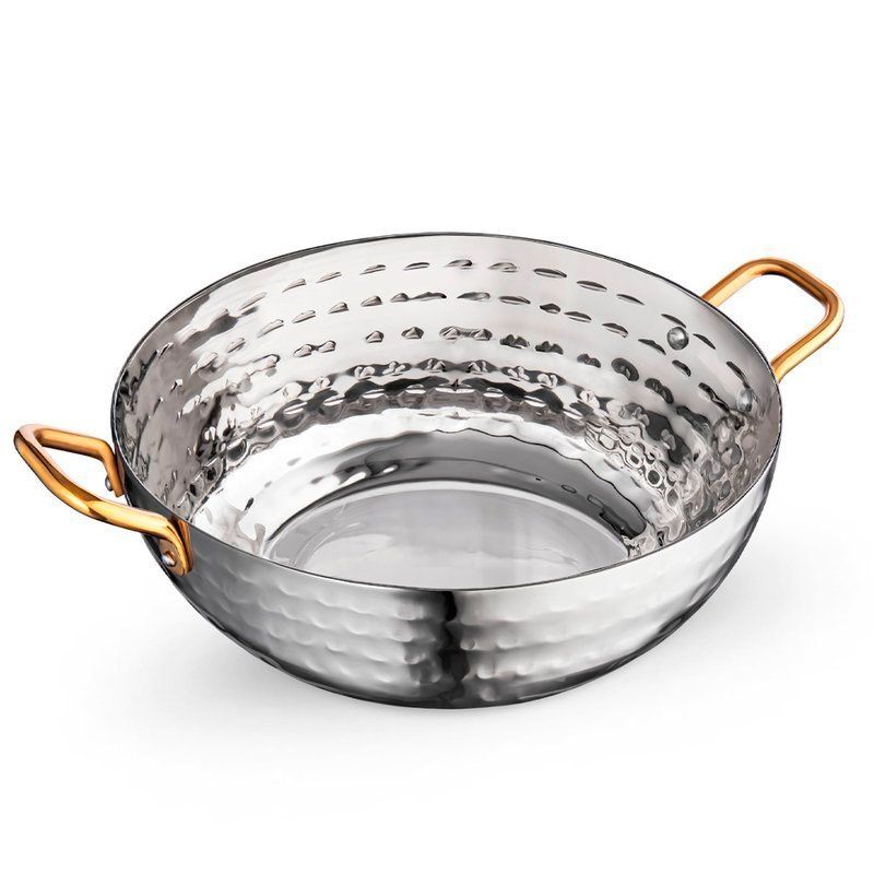 Сковорода сервировочная 18*6см нерж.сталь Silver глубокая с 2-мя зол.ручками WL-554132/S (6/24)