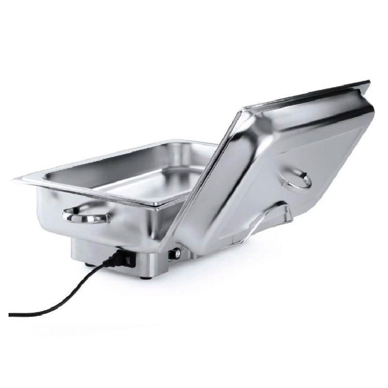 Чафинг-диш VIATTO VA-CD09A используется в столовых, в фуд-кортах, на шведских столах для поддержания в горячем состоянии, демонстрации и раздачи различных блюд. Имеет съемную крышку, которая может быть закреплена в открытом виде на специальном держателе.
