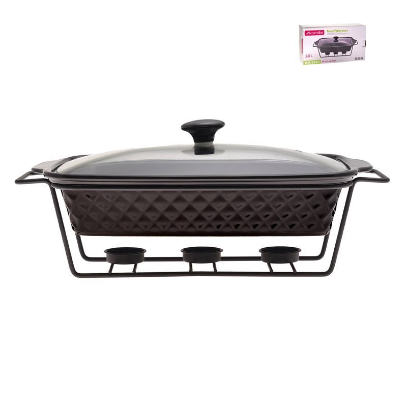 Мармит 2л 36*21*6,5см керамика прямоугольный 3 свечи мет.подставка черный арт.6421 (4)