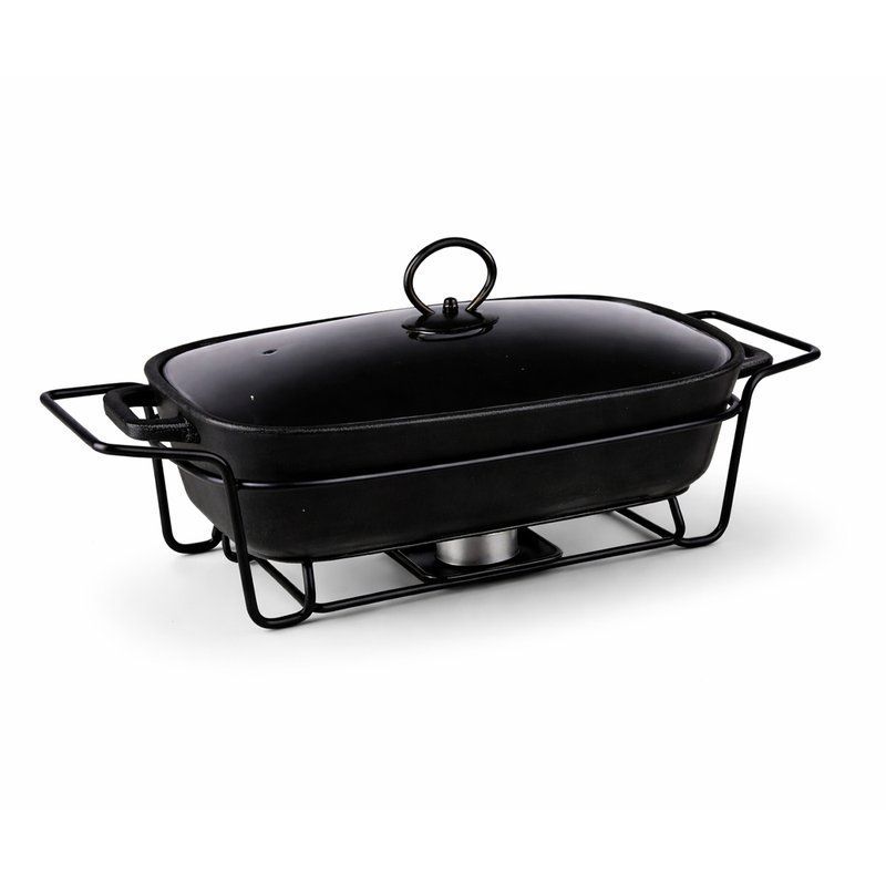 Мармит 2,5л керамика прямоугольный (стекл.крышка, мет.подставка) 43*21,5*11см черный (4)