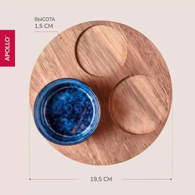 Эта менажница имеет три удобных секции, которые позволяют разделить различные блюда, сохраняя их вкус и аромат. Деревянная подставка не только обеспечивает устойчивость, но и добавляет природную теплоту и уют в обстановку. Размер 20х1.5 см идеально подходит для компактной и удобной подачи блюд, не занимая много места на столе.