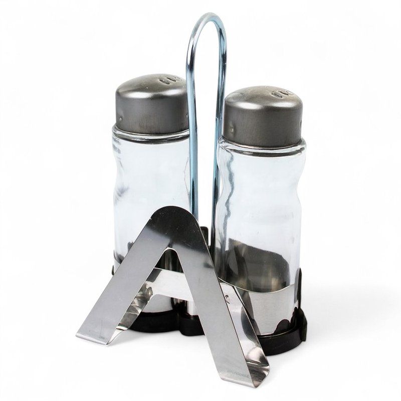Набор для специй 2пр (соль, перец + салфетница) стекло на мет.подставке JC-15983 (72)