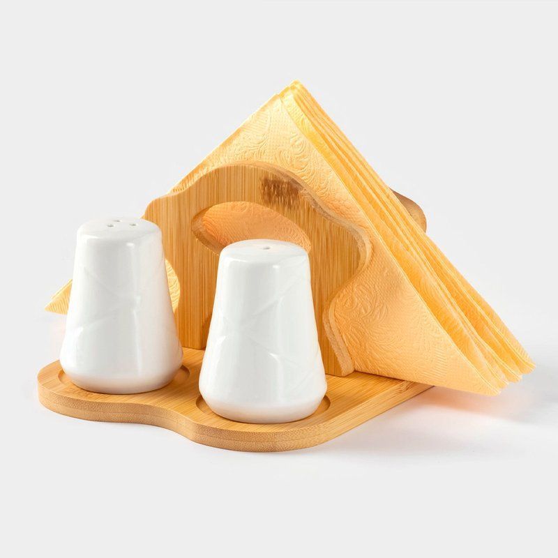 Набор для специй 3пр (солонка, перечница, салфетница) фарфор на дерев подставке Bella Tenero (36)