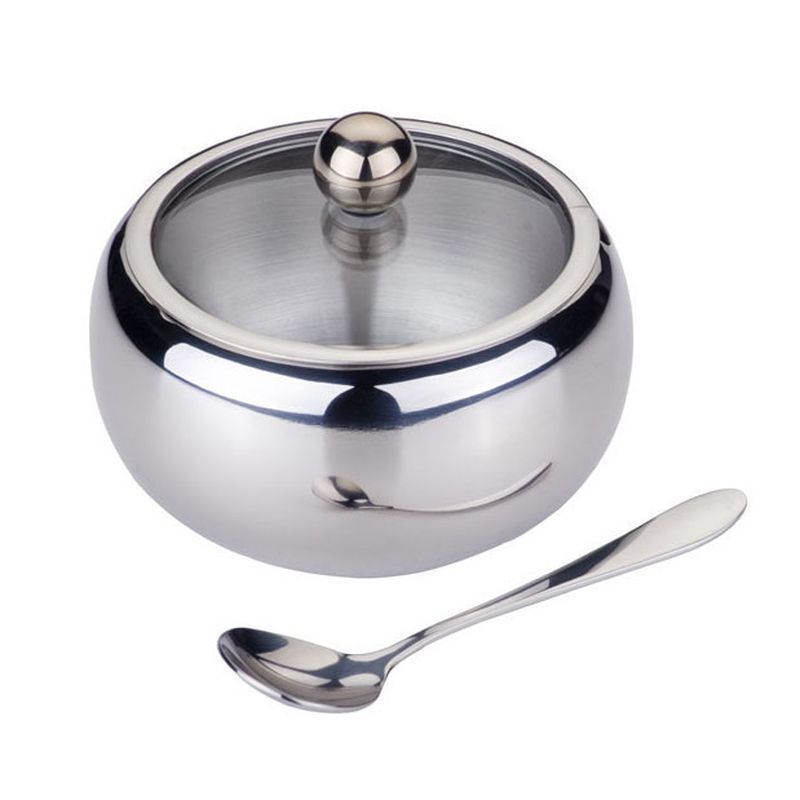 Сахарница 560мл нерж.сталь с ложкой, стекл.крышкой (12)