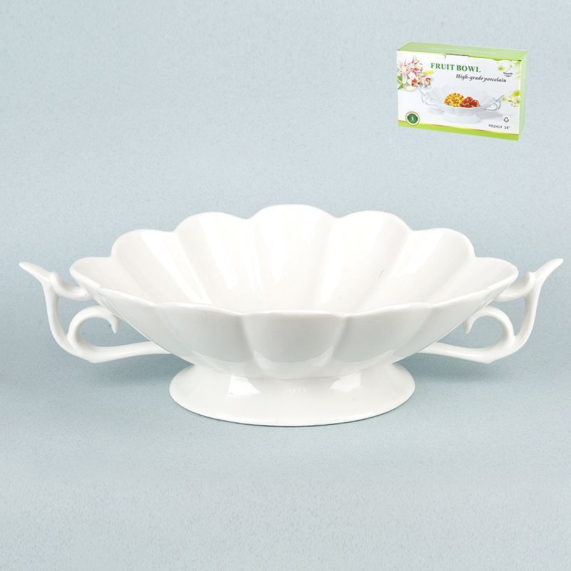 Салатник 36*24*10см фарфор МАРШМЕЛЛОУ на ножке с ручками подар.уп (8/36)