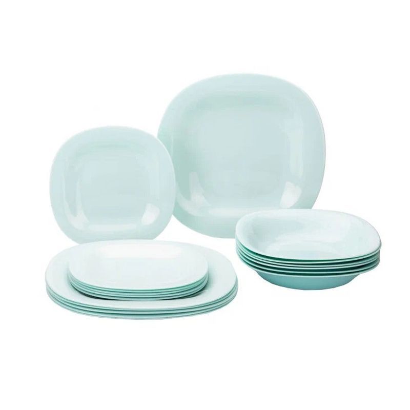 Столовый набор серии Карин лайт тюркуаз выполнен из ударопрочного стекла, устойчивого к резким перепадам температуры. Возможно использование в посудомоечной машине и СВЧ.