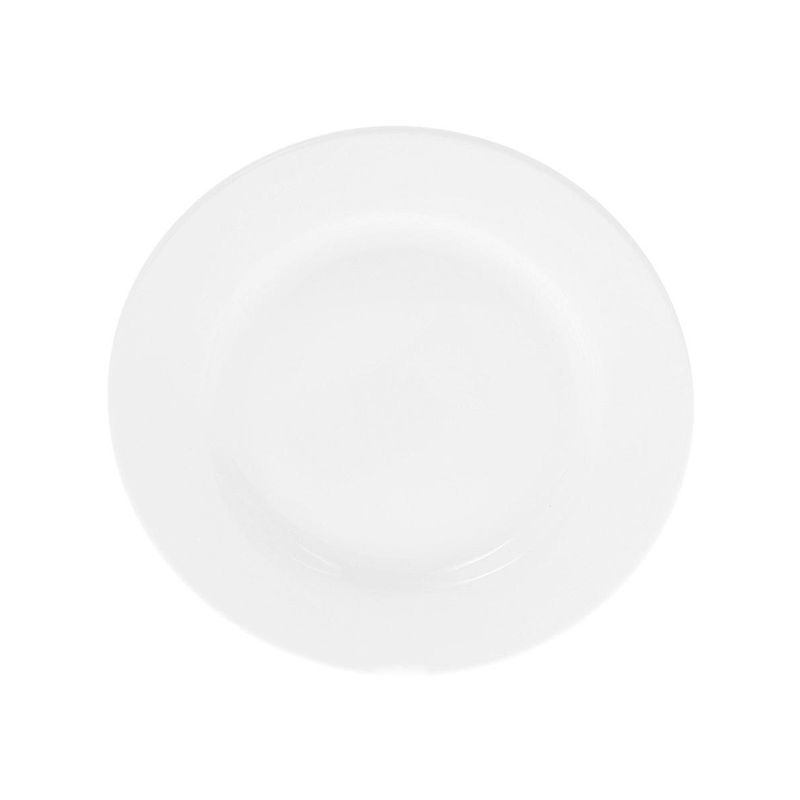 Большая круглая обеденная тарелка с бортами имеет достаточно большой объем для того, чтобы вместить в себя большую порцию салата или второго блюда. Плоская тарелка для горячего, десертов, закусок и салатов имеет стильный современный дизайн, благодаря чему она прекрасно впишется в любой интерьер и станет украшением обеденного стола. Тарелка выполнена из тонкого белого фарфора и покрыта глазурью для придания ей прочности и продления срока ее службы. Благодаря глазури фарфор не впитывает соки от еды и легко моется вручную, а также обладает устойчивостью к царапинам и трещинам даже при неосторожном использовании. Помыть тарелку можно также в посудомоечной машине. Термостойкая плоская тарелка для горячих блюд также устойчива к повышению температуры, поэтому еду в ней можно подогреть в микроволновке или свч-печи.