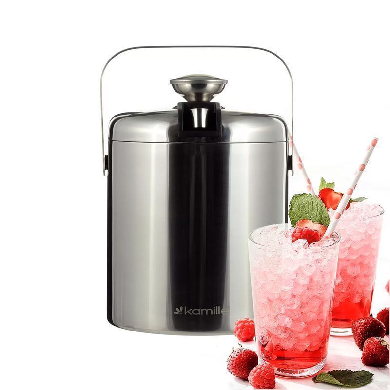 Ведро для льда выполнено из прочной нержавеющей стали, обладает стильным минималистичным дизайном, поэтому отлично дополнит любую сервировку. Эргономичная ручка-дужка позволит удобно держать в одной руке. В комплект входят специальные щипцы для льда, поддон с отверстиями чтобы вода с растаявшего льда стекала на дно. Конструкция с двойными термоизоляционными стенками позволяет льду дольше оставаться не растаявшим. Предмет и комплектующие можно мыть в посудомоечной машине.