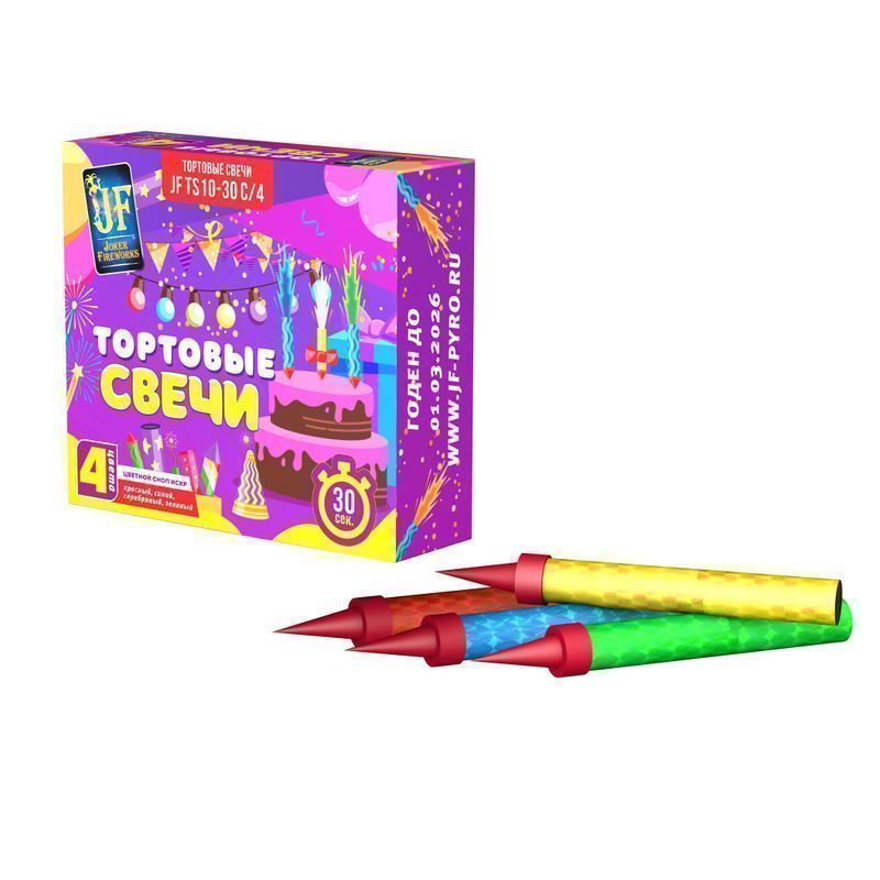 Набор свечей для торта Фонтан Джокер 4шт. 10см горение 30сек. JF TS10-30 (30)