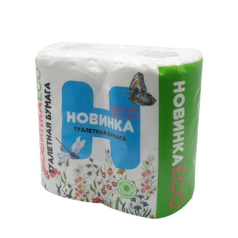 Бумага туалетная НОВИНКА ЭКО 4шт 2-х слойная белая целлюлозное сырье (12)