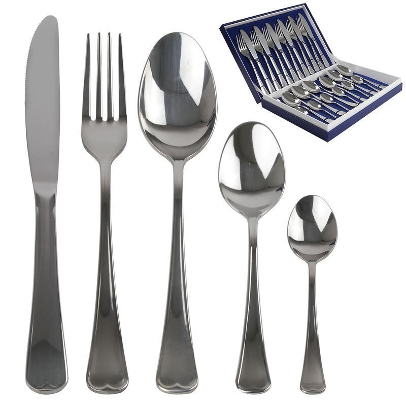6 столовых ножей,6 столовых вилок,6 столовых ложек,6 чайных ложек,6 кофейных ложек