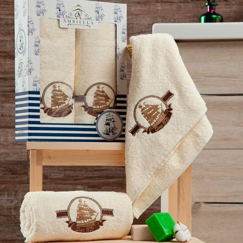 Набор полотенец махровых 2пр 50*90см/70*140см КОРАБЛИК кремовый