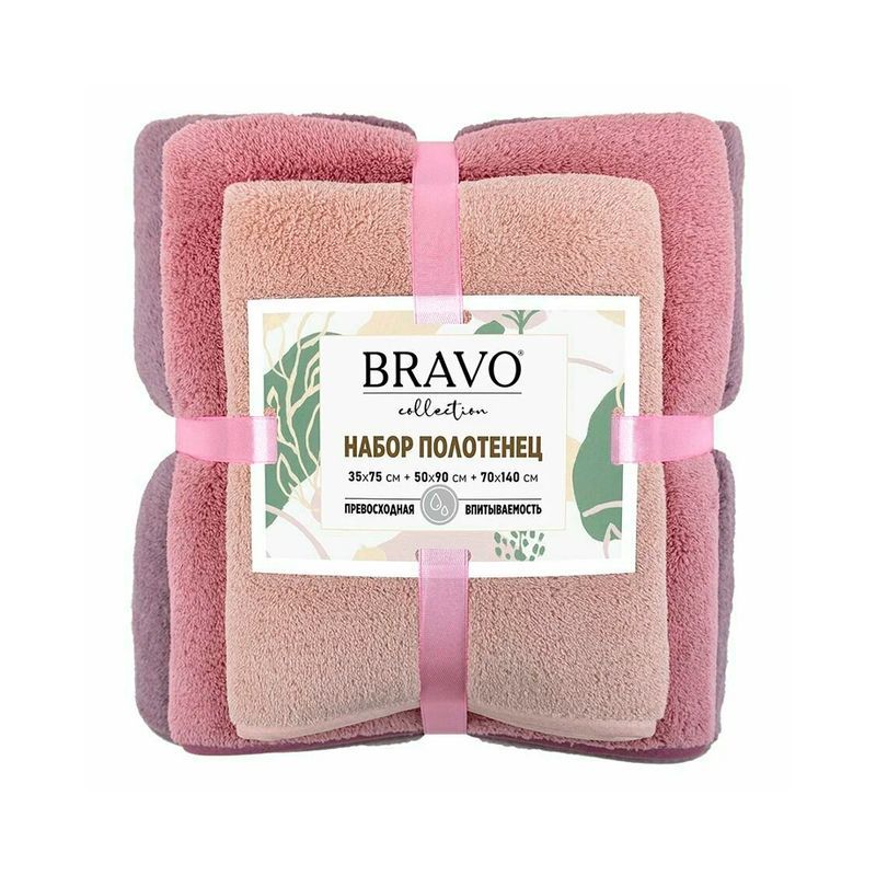 Набор полотенец микрофибра 3пр 35*75см/50*90см/70*140см Сванк брусничный 300гр м0854_29
