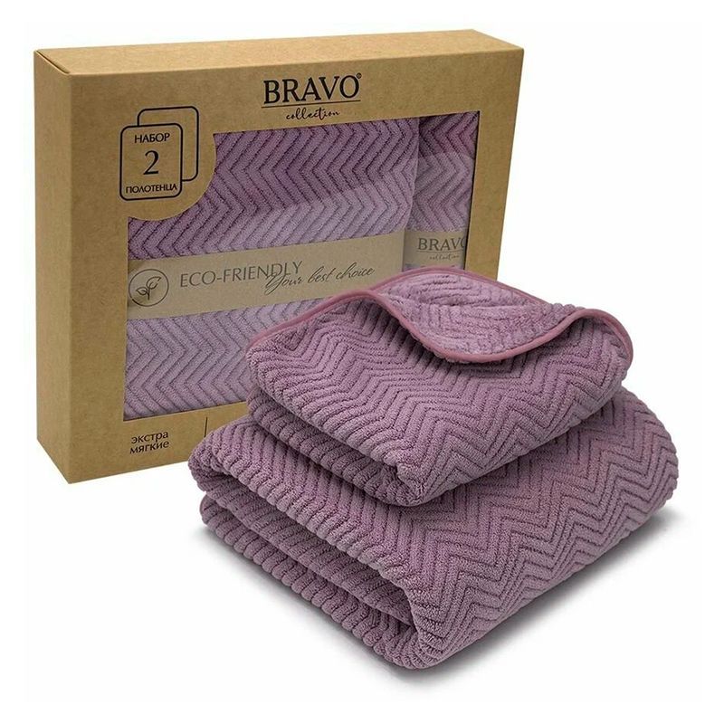 Набор полотенец микрофибра 2пр 35*75см/70*140см Крафт брусничный 300гр м0904_29