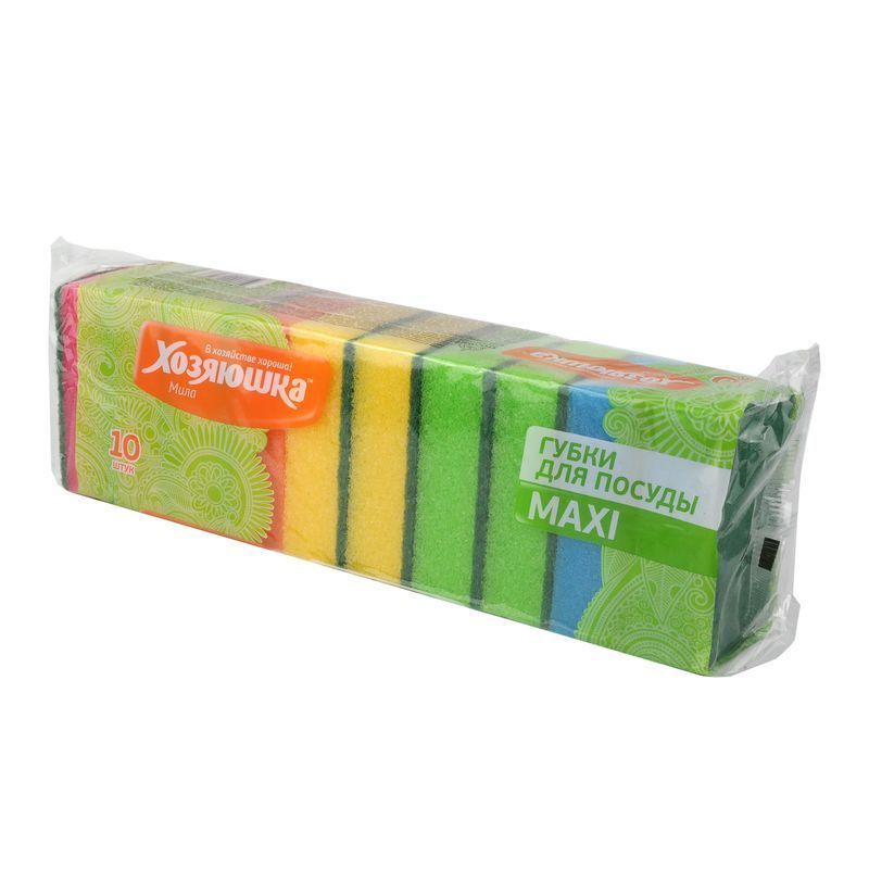 Губка для посуды 10шт 9,3*6,5*3см ХОЗЯЮШКА Мила MAXI Г-08 (26)