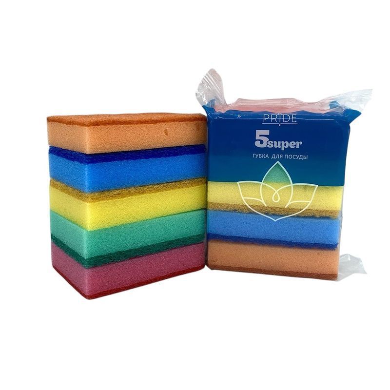 Губка для посуды 5шт нейлон/поролон СУПЕР с чистящим слоем 95*70мм ГХ006 (30)