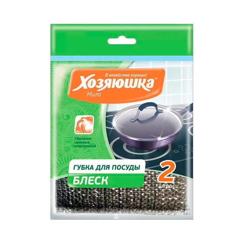 Губка для посуды 2шт 12,5*8,5*1,5см пенополиуретан ХОЗЯЮШКА Мила БЛЕСК (160)