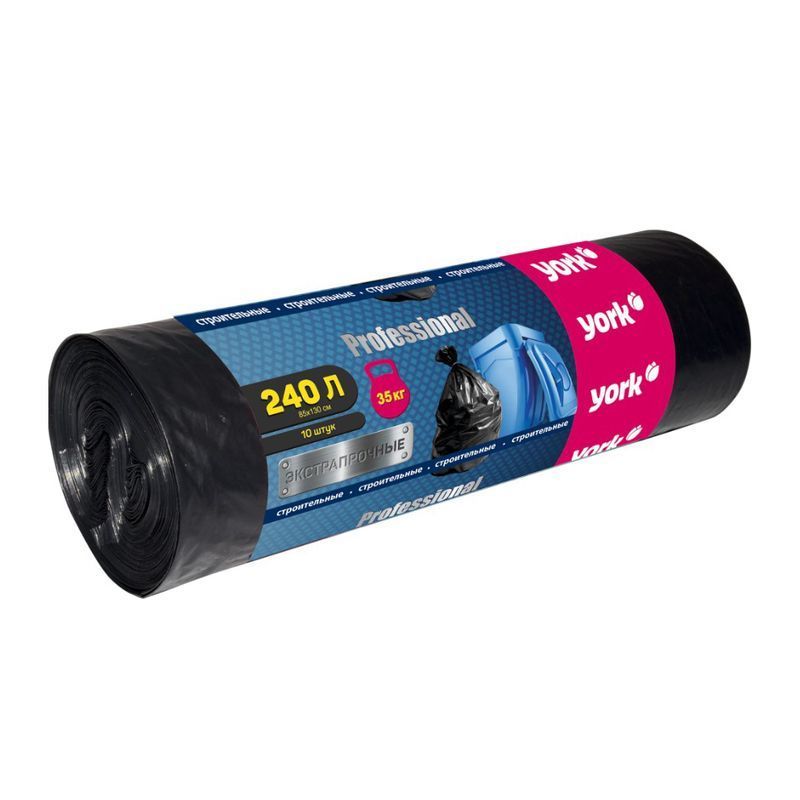 Пакеты для мусора 240л/10шт 45мкм полиэтилен строительные прочные YORK (8)