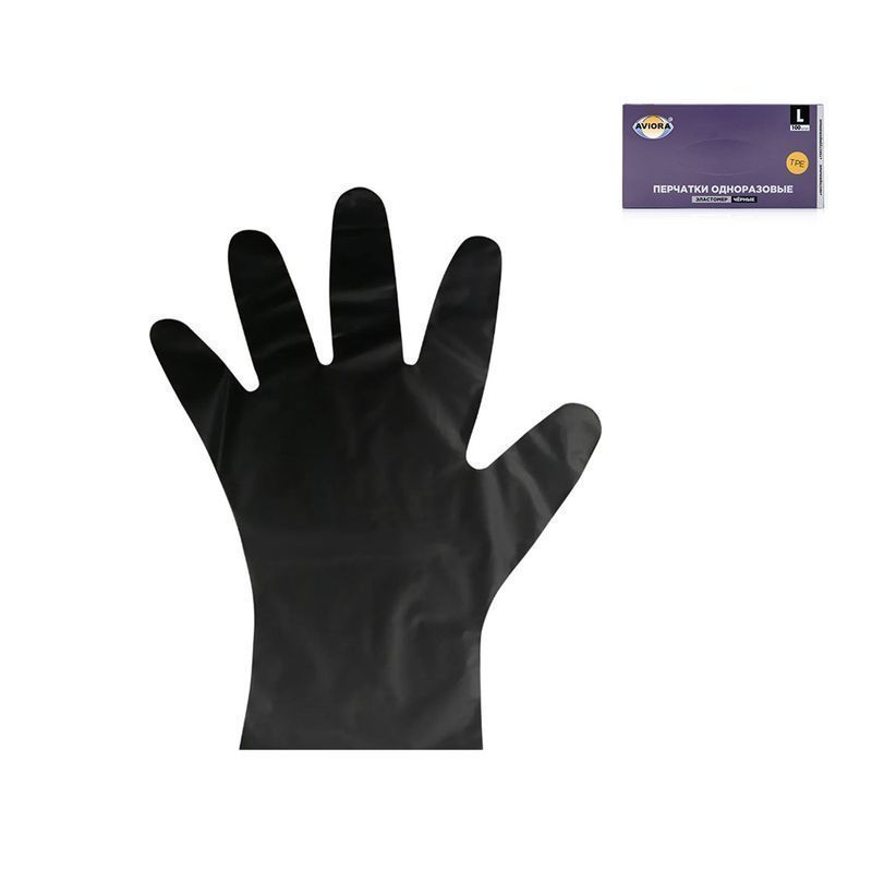 Перчатки одноразовые 100шт эластомер черные р-р L (10)