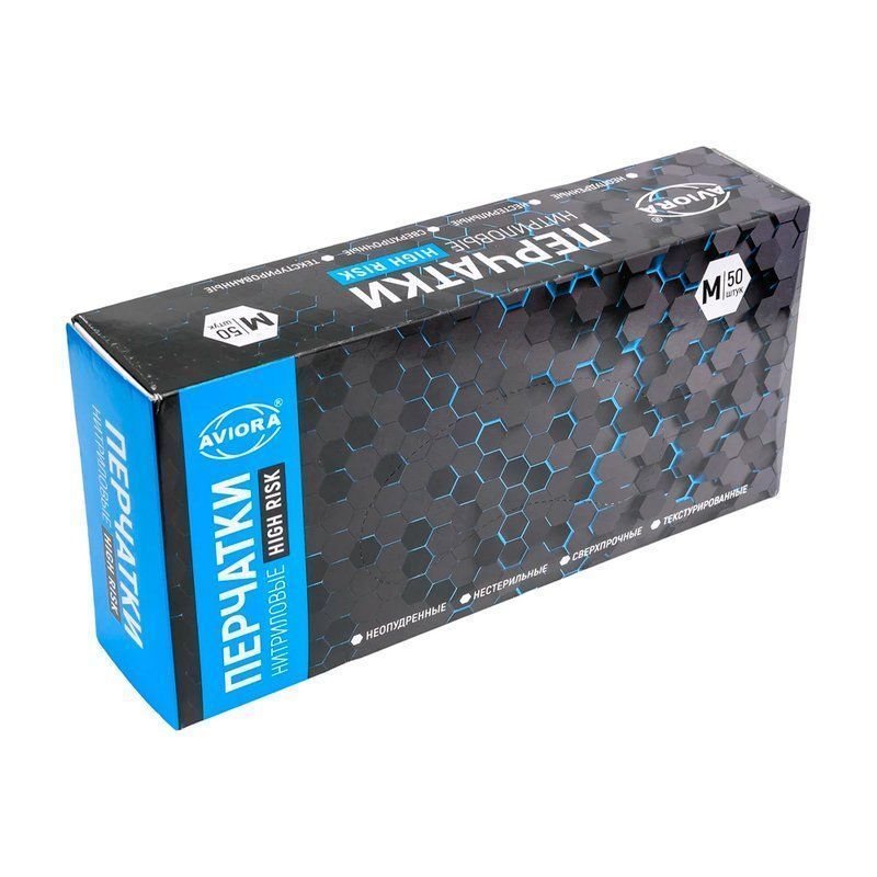 Перчатки нитриловые с удлиненной манжетой 50шт р-р M HIGH RISK AVIORA (10)