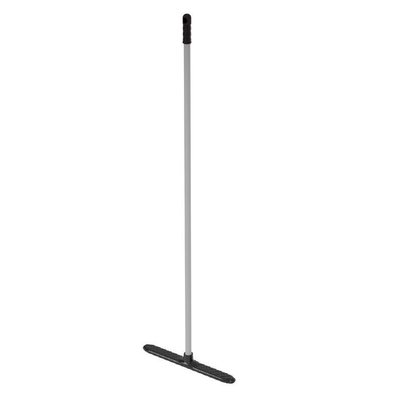 Конструкция изделия состоит из швабры и черенка. Насадка произведена из полипропилена и имеет ребристую поверхность. Черенок имеет алюминиевый каркас и покрыт ребристой пленкой, благодаря чему швабра не будет выскальзывать из рук. Изделие имеет компактный размер и не займет много места при хранении.