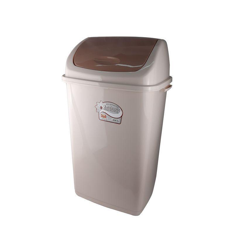 Контейнер для мусора 50л пластик ФАНТАЗИЯ молочный с подвижной крышкой (6)