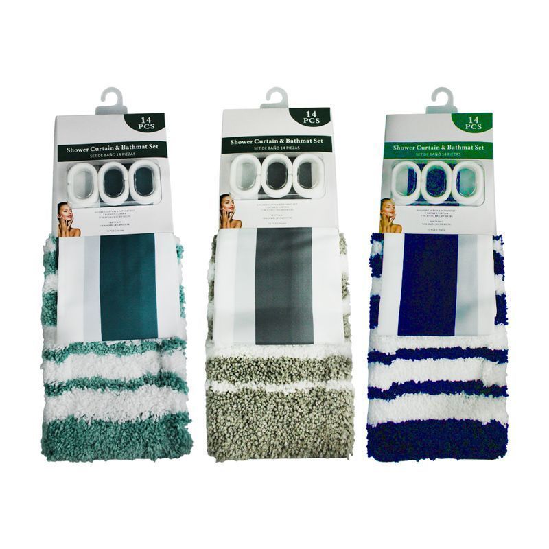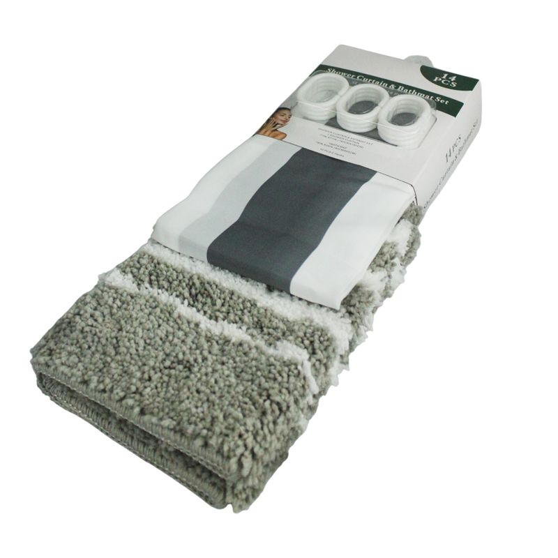 Комплект для ванной 2пр штора и коврик 180*180/45*65см полиэстер mix (36)