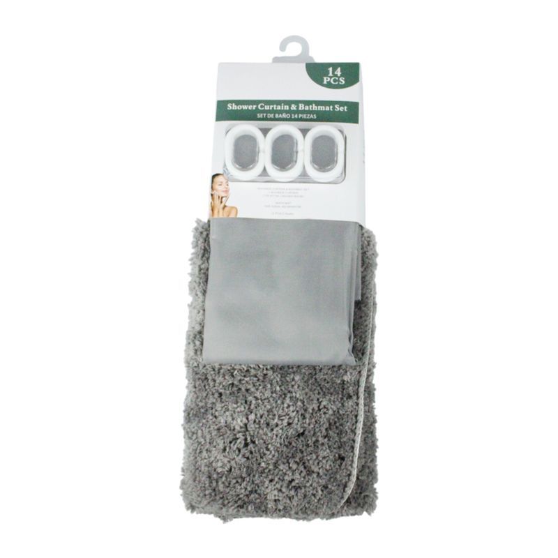 Комплект для ванной 2пр штора и коврик 180*180/45*65см полиэстер серый (36)